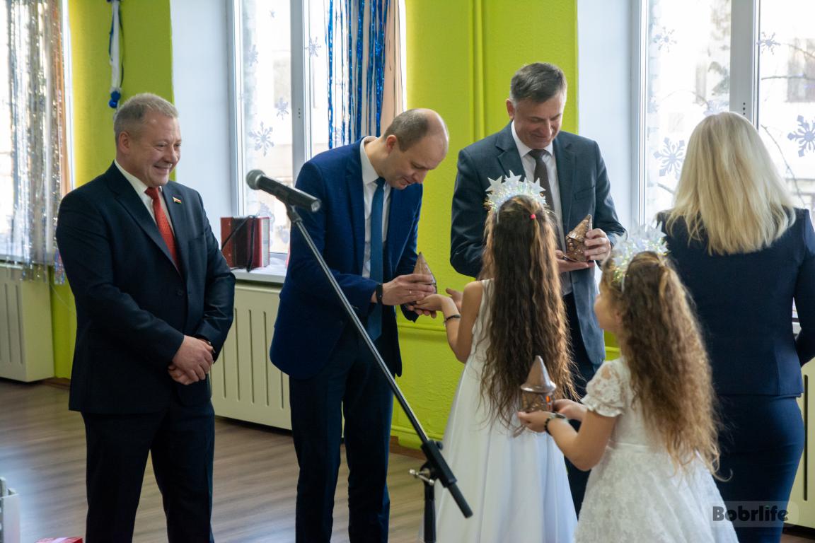 Благотворительная акция «Наши дети» дарит радость, добро и внимание. С поздравлениями и подарками 24 декабря Бобруйскую школу-интернат для детей с нарушением слуха посетили почетные гости, среди которых: заместитель председателя "Белорусский производственно-торговый концерн лесной, деревообрабатывающей и целлюлозно-бумажной промышленности" Геннадий Диковицкий, председатель Могилевского обкома профсоюза работников ЖКХ Павел Жуйков, генеральный директор ОАО «ФанДОК» Валерий Боровик и многие другие.