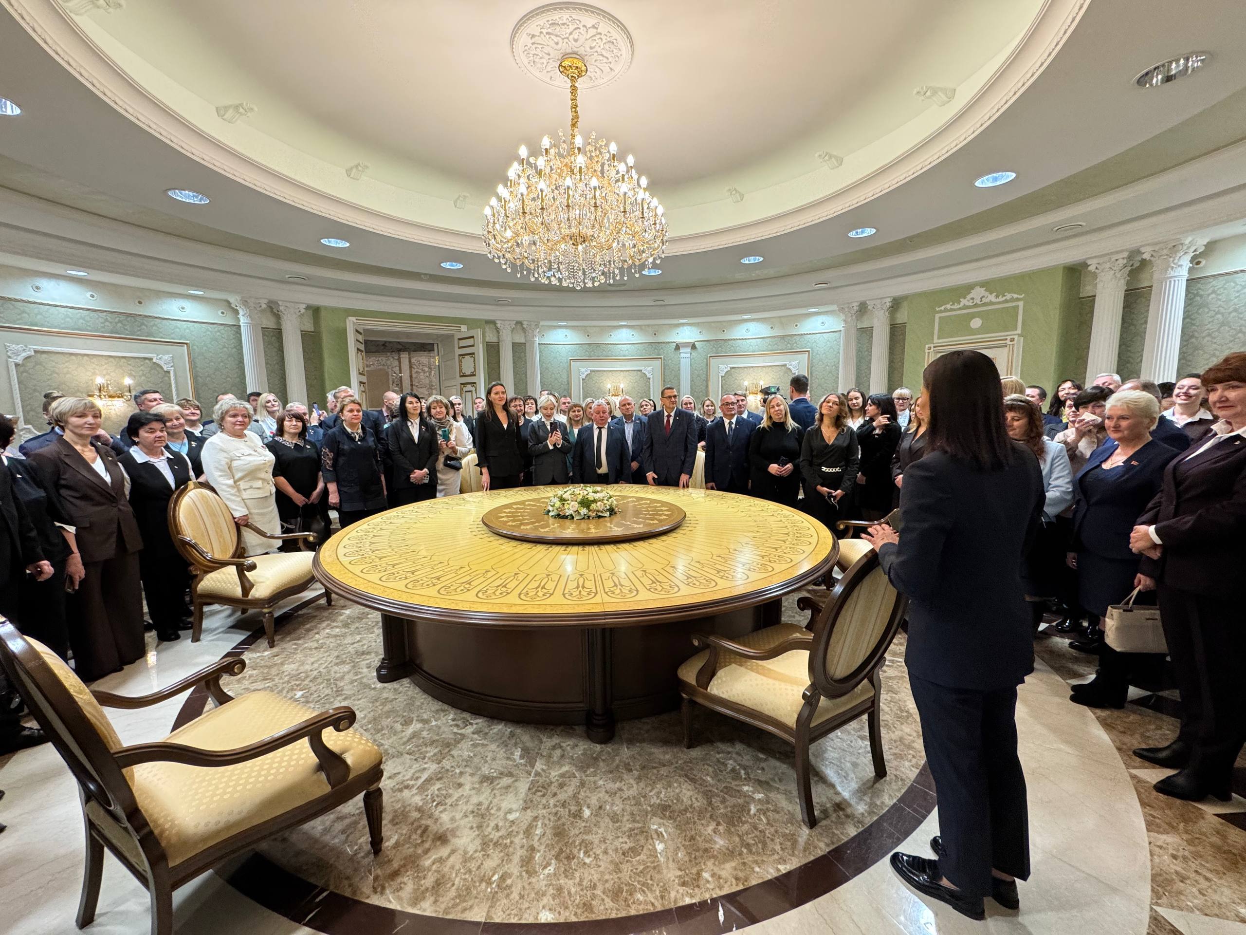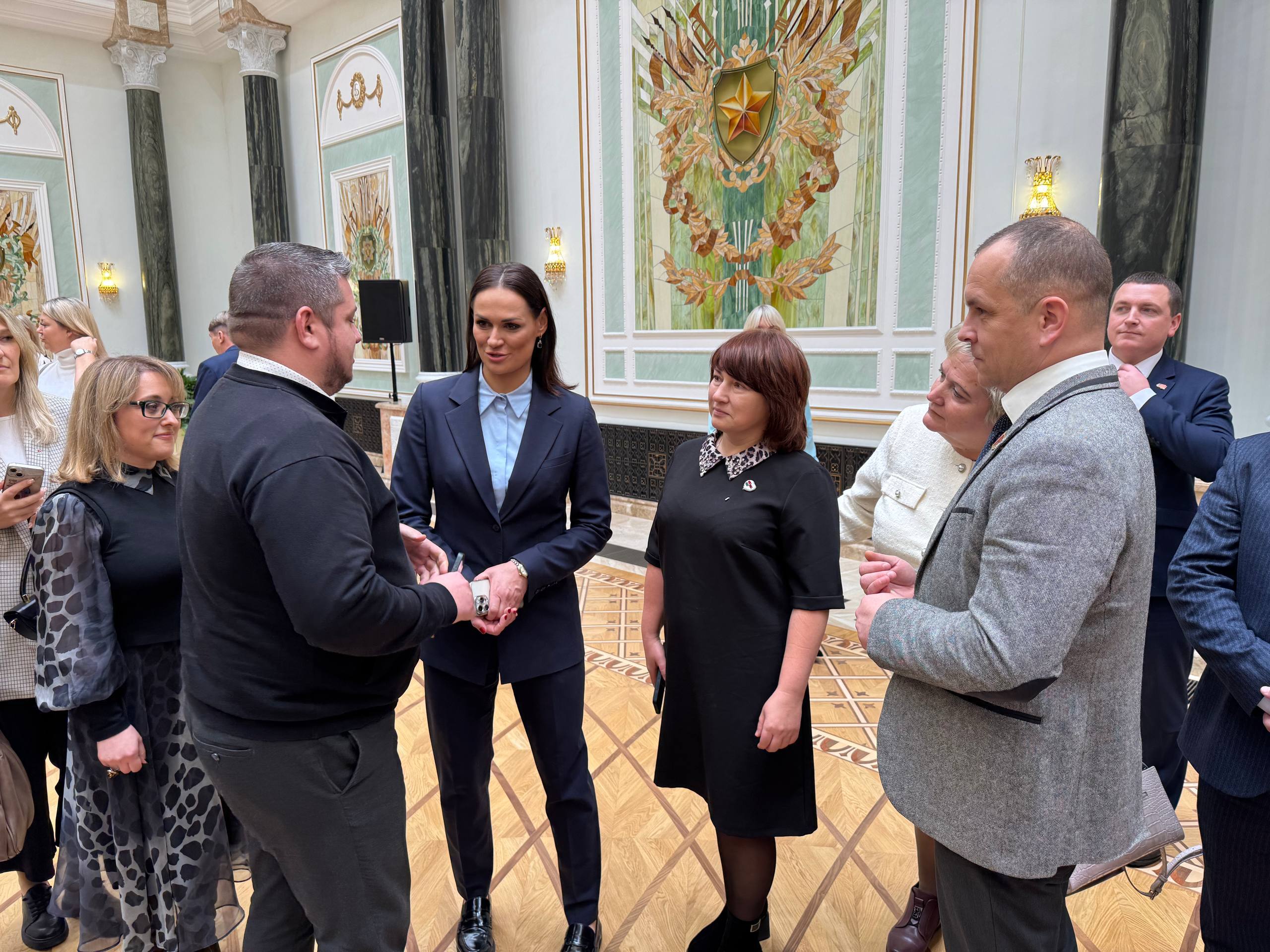 Пресс-секретарь Президента Республики Беларусь Наталья Эйсмонт провела увлекательную экскурсию по Дворцу Независимости, поделившись интересными деталями его истории и символического значения для страны. Активисты объединения смогли познакомиться с историей этого места и лично почувствовать связь с президентскими инициативами.