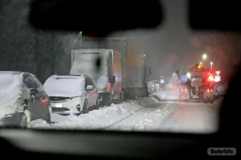 По стране объявлен красный уровень опасности, МЧС и ГАИ призывают воздержаться от поездок. Осадки и ветер сохранятся 9 января в течение дня.