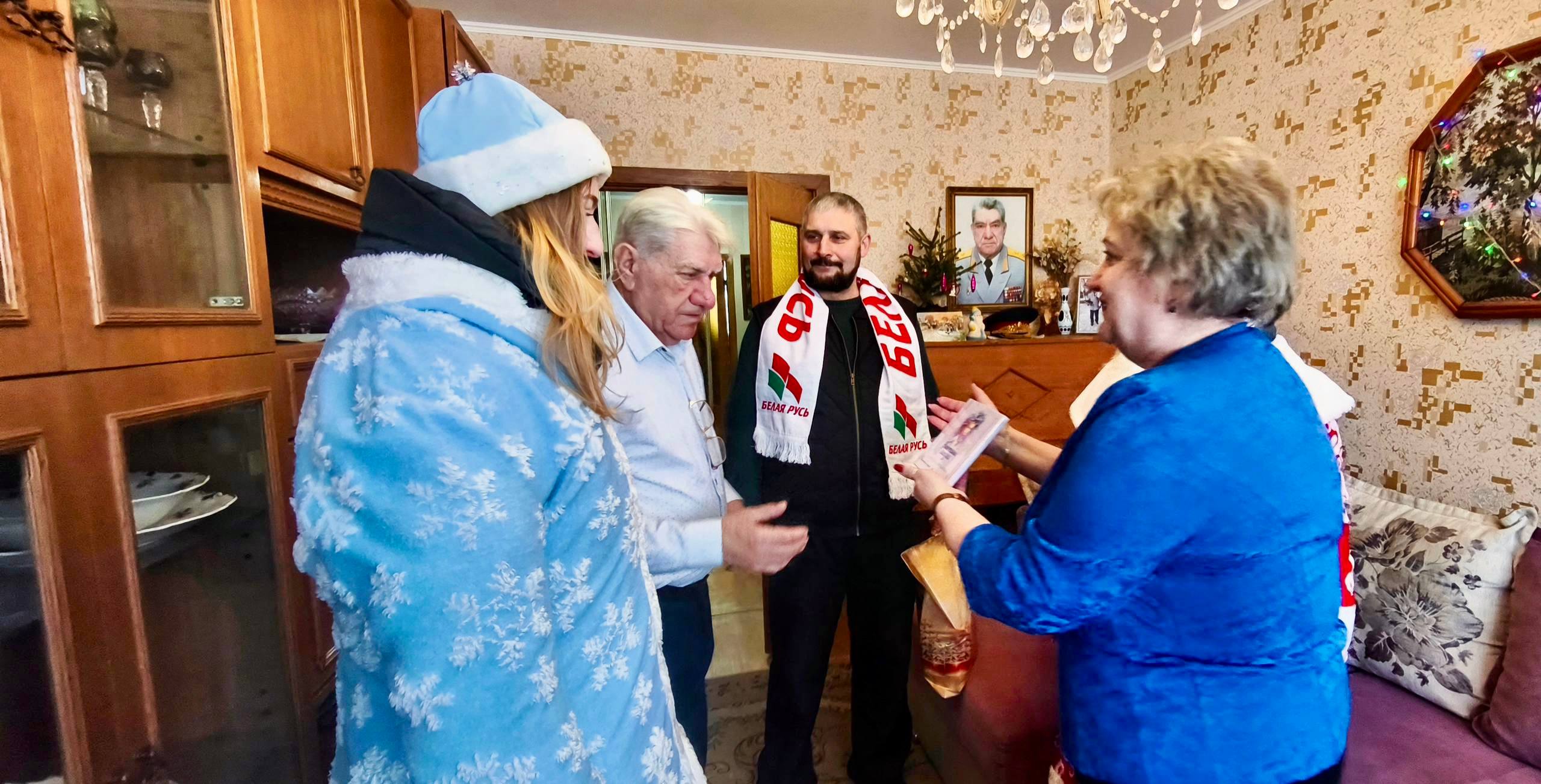 Председатель Ленинской районной организации Бобруйска РОО «Белая Русь» Ирина Русакович вместе с активистами, вручив праздничные подарки, тепло поздравили Станислава Степановича со Старым Новым годом, пожелав ему крепкого здоровья, бодрости духа и долгих лет жизни.